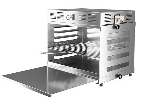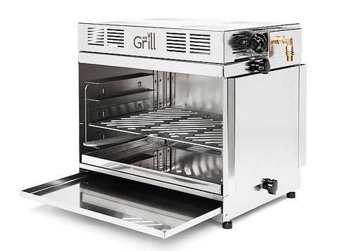 Gasolen tillsammans med de infraröda brännarna genererar ca 850°C. Det betyder att råvarornas porer stängs omedelbart. Kött, fisk och fågel bibehåller saftighet och smakämnen bättre.
